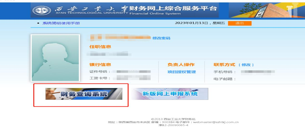 第一步:登录财务官网,进入“财务综合服务平台”,再进入“财务查询系统”。(如图一所示)